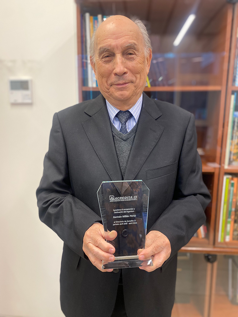Germán Millán no solo es un ingeniero que ha entregado largos años profesionales al Colegio de Ingenieros a través del Consejo de Especialidad Civil y otros cargos, sino que además presidió en varios periodos el directorio de Acredita, la Agencia Acreditadora del Colegio de Ingenieros. Es por este motivo que el Colegio de Ingenieros entregó un reconocimiento a su labor en el directorio de la Agencia, de manos del presidente del gremio, Hernán de Solminihac.