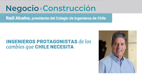 January 28, 2021 January 28, 2021Categorías Actualidad Consejo NacionalIngenieros protagonistas de los cambios que Chile Necesita, entrevista a Raúl Alcaíno, presidente del Colegio de Ingenieros en Negocio y ConstrucciónPuedes leer la revista y entrevista completa AQUÍ