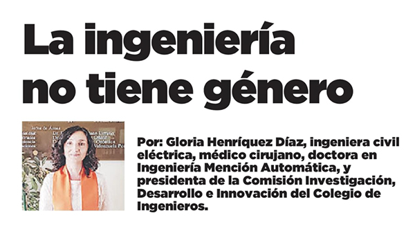 March 8, 2021 March 8, 2021Categorías ActualidadDía Internacional de la Mujer: La ingeniería no tiene género, editorial de Gloria Henríquez, presidenta Comisión Comisión Investigación, Desarrollo e Innovación, en especial La Tercera