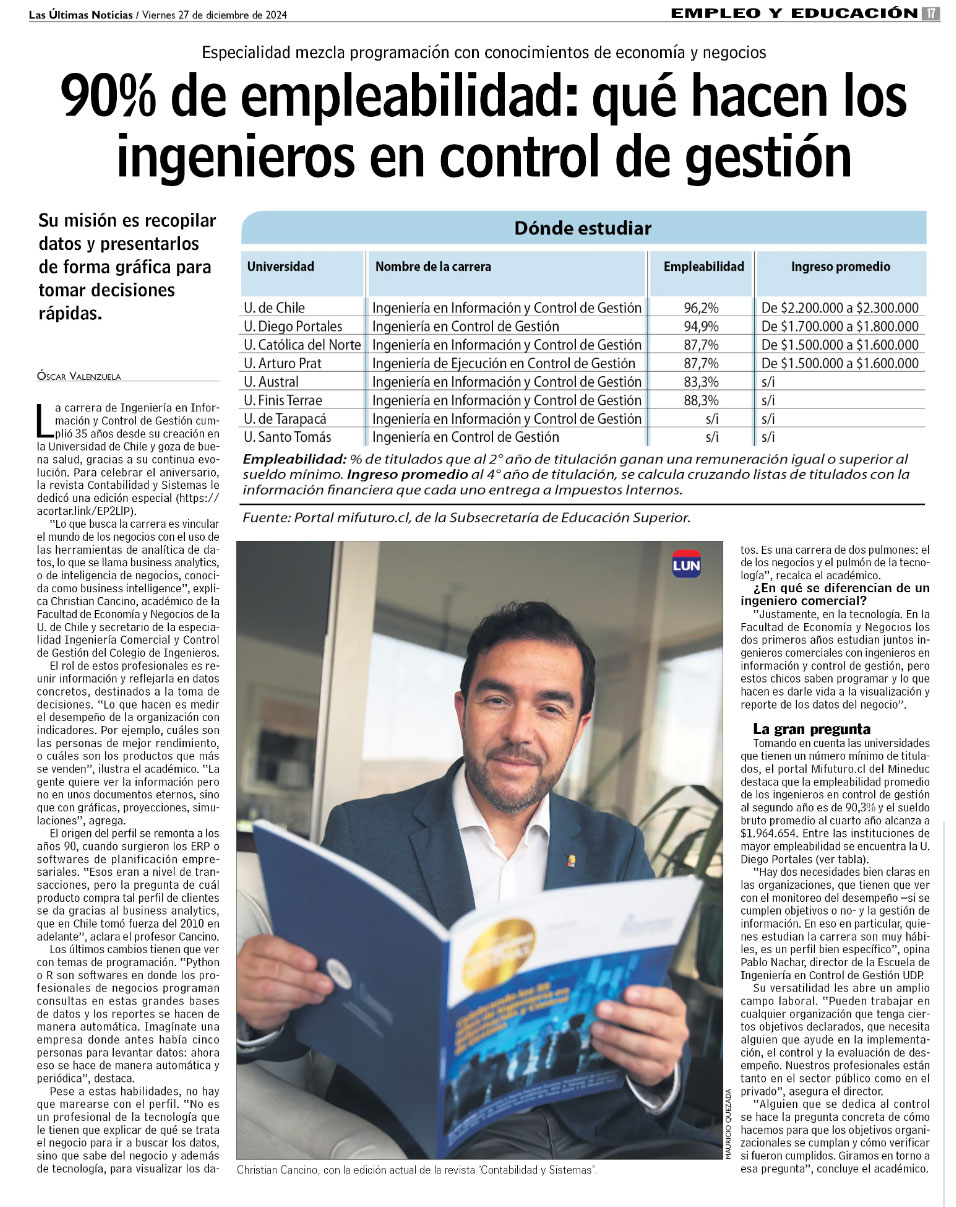 Te invitamos a leer la entrevista a Christian Cancino, consejero de la Especialidad de Ingeniería Comercial y Control de Gestión en el especial de Empleo y Educación del Diario Las Últimas Noticias.