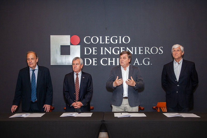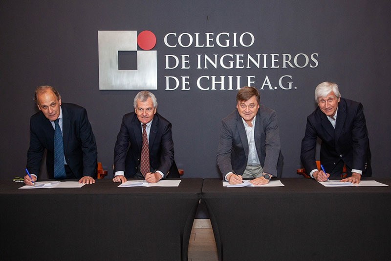 En representación de cada institución, firmaron: Hernán de Solminihac, presidente Colegio de Ingenieros; Alfredo Echavarría, presidente de la Cámara Chilena de la Construcción; Carlos Cruz, director ejecutivo CPI y Juan Carlos Barros, presidente del Instituto Ingenieros.