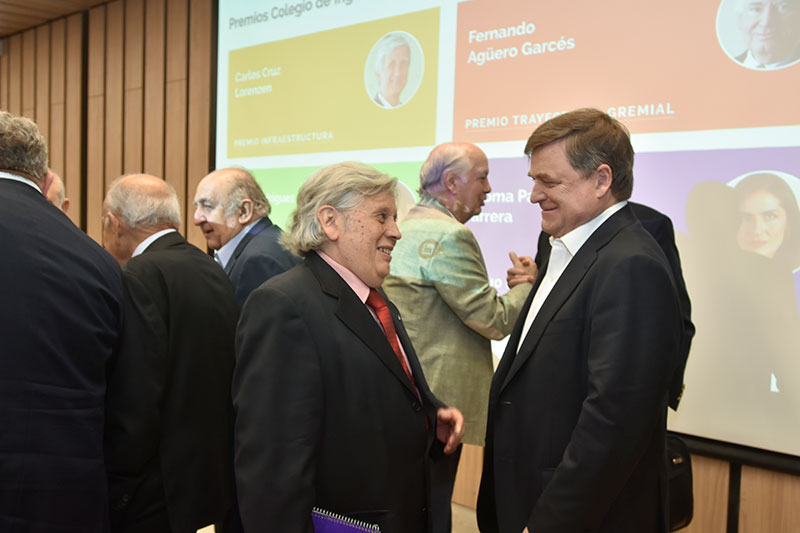 José Rodríguez Pérez, ingeniero civil y académico de la Universidad San Sebastián recibió el Premio Educación; Paloma Paz Ávila Barrera, periodista y conductora de CNN, el Premio Distinción Periodística; Carlos Cruz Lorenzen, ingeniero comercial y director del Centro de Políticas de Infraestuctura, el Premio Infraestructura y Fernando Agüero Garcés, ingeniero civl y ex presidente del Colegio de Ingenieros el de Trayectoria Gremial.