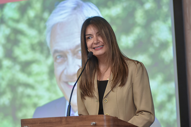 Andrea Rojas, gerente general del Colegio, inició el acto con unas palabras de bienvenida, para luego dar paso al discurso de Hernán de Solminihac: