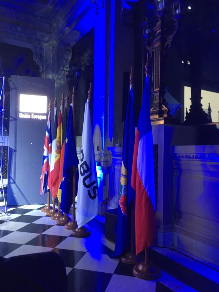 - Sergio Wilhelm, presidente del Consejo Especialidad Aeronáutica y Espacio, Colegio de Ingenieros de Chile A. G.; Alfonso Casado, director de geo-inteligencia de Airbus; José Ignacio Rexach, director regional para el sur de América Latina marketing y ventas de Airbus y Arturo Gana de Landa, Presidente del Colegio de Ingenieros de Chile A. G.