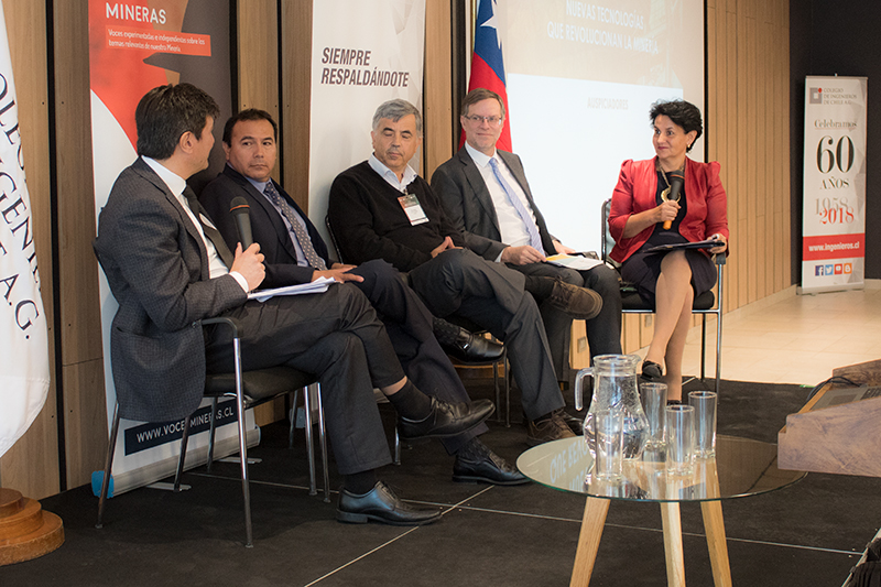 El foro culminó con un interesante panel de ejecutivos, quienes se refirieron a estas tecnologías, a otros desarrollos que se están incorporando en sus faenas y al estado de la innovación en la industria minera. En él participaron Alejandro Vásquez, CEO de BHP Pampa Norte; Eric Zepeda, vicepresidente de Operaciones de Sierra Gorda SCM; Álvaro Aliaga, vicepresidente de Operaciones Norte de Codelco y Francisco Walther, de AMSA.