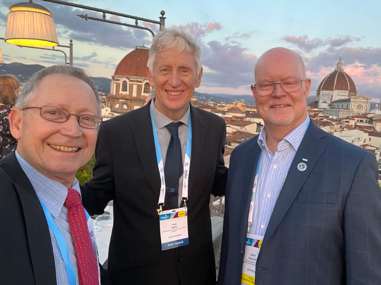 - Eduardo Guevara, consejero Especialidad Aeronáutica y del Espacio; John Monk, presidente de la Aeronautical Society de Sudáfrica y Geoff Wilkinson, representante de la Royal Aeronautical Society de Australia y miembro del Comité de Programa del ICAS.