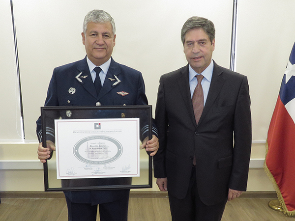 El 14 de octubre, las autoridades del Colegio de Ingenieros de Chile A.G., encabezadas por su presidente, Raúl Alcaíno Lihn; el secretario general, Sergio Wilhelm Flores; el consejero nacional, Manuel Aparicio Mery y el ex secretario general, Alfredo Guzmán Matus, llegaron hasta la Dirección General de Aeronáutica Civil de Chile para entregar al director del organismo dependiente de la Fuerza Área de Chile, el General de aviación, Víctor Villalobos Collao, el Premio Nacional Colegio de Ingenieros categoría Empresa, reconocimiento que entrega anualmente el Colegio de Ingenieros.