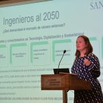 "¿Qué necesitamos de los ingenieros del futuro? vamos a necesitar ingenieros que se adapten, con pensamiento crítico, comprometidos, flexibles, con mentalidad de crecer, que sean creativos, con habilidades en un entorno cambiante", complementó la ingeniera, abriendo la inquietud por qué las escuelas de ingeniería no tienen ramos de sostenibilidad.