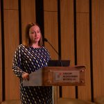 Loreto Valenzuela, decana de la Facultad de Ingeniería de la Universidad Católica hablo desde su visión en la academia, en que hoy no basta con educar y formar integralmente, sino con descubrir, crear conocimiento y traducir el conocimiento: "No basta con hacer buena tecnología pero cómo logramos transformarlo en iniciativas y trabajos que generen impacto. La ingeniería no es solo hacer aviones, sino soñarlos".