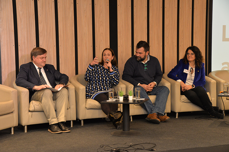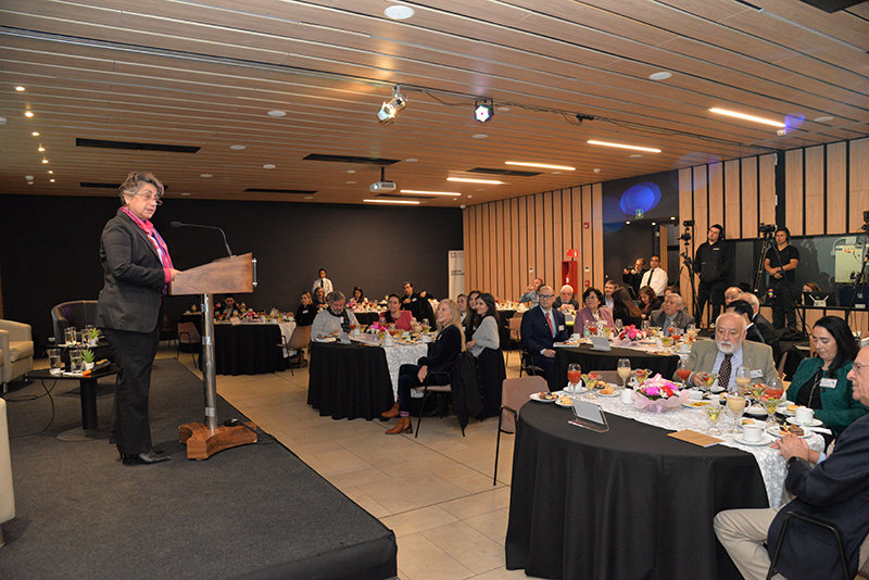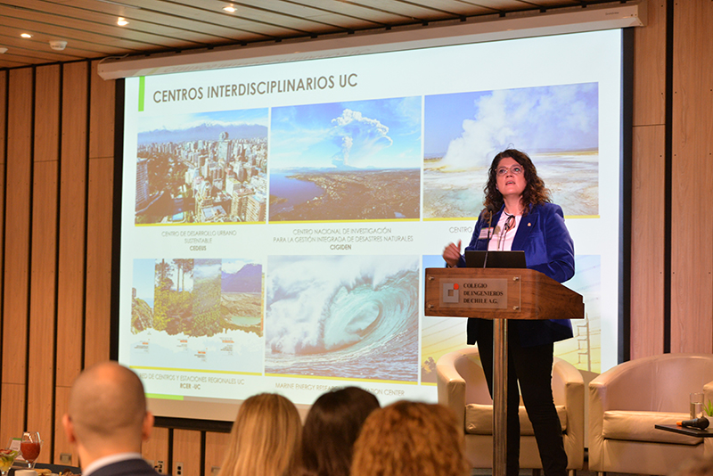 Loreto Valenzuela, decana de la Facultad de Ingeniería de la Universidad Católica hablo desde su visión en la academia, en que hoy no basta con educar y formar integralmente, sino con descubrir, crear conocimiento y traducir el conocimiento: "No basta con hacer buena tecnología pero cómo logramos transformarlo en iniciativas y trabajos que generen impacto. La ingeniería no es solo hacer aviones, sino soñarlos".