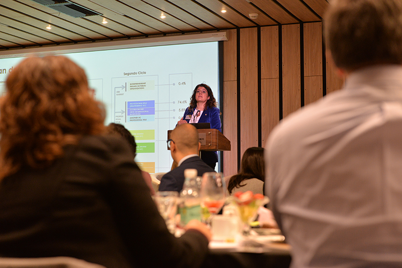 Luego fue el turno de José De Gregorio, decano de la Facultad de Economía y Negocios de la Universidad de Chile, quien recalcó la importancia de la flexibilidad: Vamos a un mundo de mucha flexibilidad y adaptabilidad. "El año 2019 el mundo produjo 100 y el 2020 el mundo produjo 97, 97 con un tercio del tiempo encerrados", entregando un dato duro respecto del aprendizaje de adaptación y reconociendo el espacio para el aumento de la productividad. "Vamos a enfrentar un mundo del trabajo que va a cambiar", añadió destacando lo fundamental de entender la tecnología, la utilidad de los datos y el análisis de datos para entender el mundo: "En la universidad necesitamos una mayor flexibilidad curricular y más interdisciplinariedad. Debiera haber más oportunidad de interacción y dejar a los estudiantes buscando sus intereses".