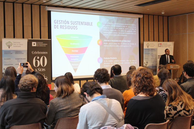 La primera presentación estuvo a cargo del Dr. Ing. René Garrido, Académico e Investigador Gestión Sustentable de Residuos Sólidos de la Universidad de Santiago de Chile, quien explicó la Ley REP 20.920, que establece el marco para la gestión de residuos, la responsabilidad extendida del productor y fomento al reciclaje con el objeto de avanzar hacia la economía circular.
