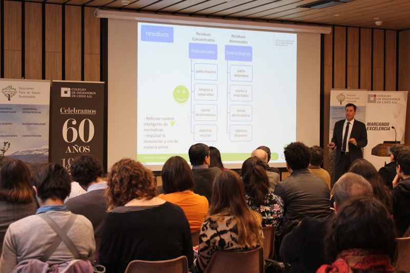 El experto, Navech, se enfocó en la identificación de productos prioritarios NO domiciliarios (Residuos Concentrados) y domiciliarios (Residuos Atomizados). Explicó, que para los NO Domiciliario aún falta reforzar el control inteligente de normativas e impulsar la innovación y uso de la materia y que para el domiciliario es importante levantar el reciclaje de las casas, departamentos y parcelas donde efectivamente están en los envase de embalaje.