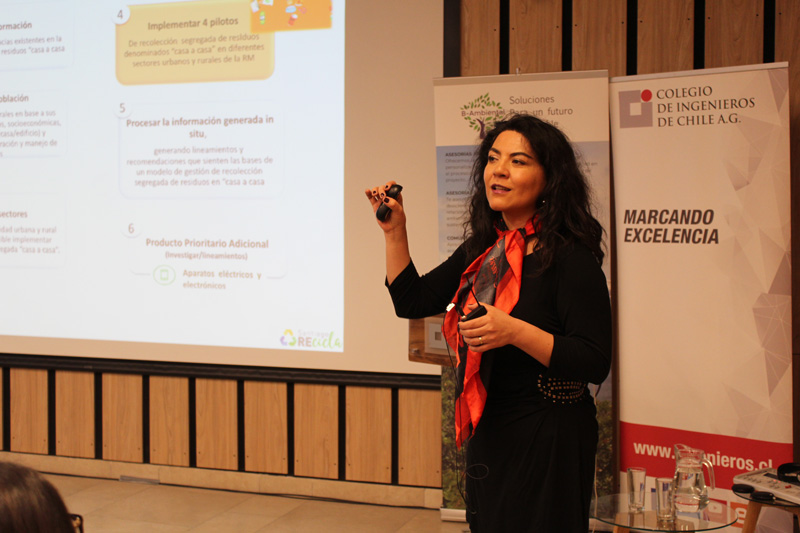 La última ponencia, estuvo liderada por Paola Cofré, Encargada del Área Residuos y Riesgo Ambiental Seremi Medio Ambiente de la Región Metropolitana, quién detalló el Plan Santiago Recicla, cuyo objetivo central es generar cambios en las conductas de la ciudadanía a través de la educación, la sensibilización y la implementación de infraestructura para reciclar el 25% de los residuos sólidos generados en la región al año 2020.