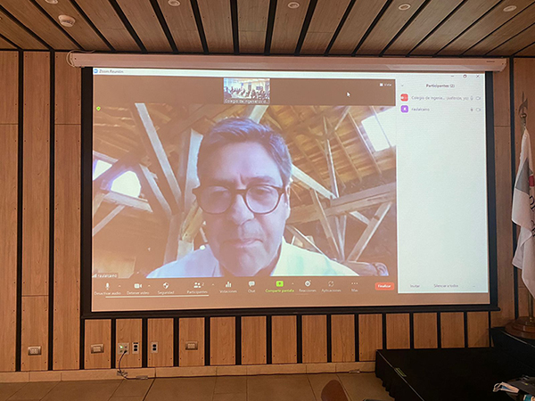 El encuentro comenzó con la presentación de Andrea Rojas, gerente general del Colegio de Ingenieros, quien luego dio la palabra al presidente de la Asociación Gremial, Raúl Alcaíno, quien estuvo a cargo de la bienvenida a los asistentes. Luego, el presidente de la Comisión comenzó con su exposición, la cual fue seguida con máxima atención por parte de los participantes.