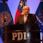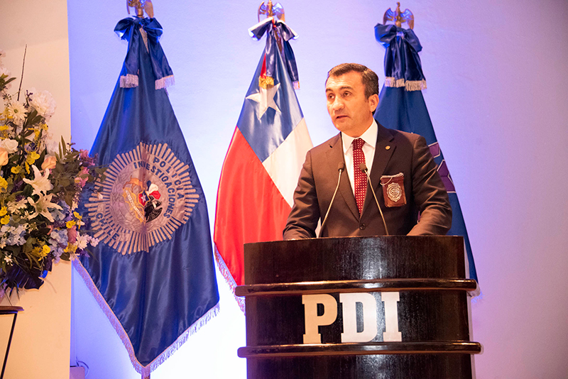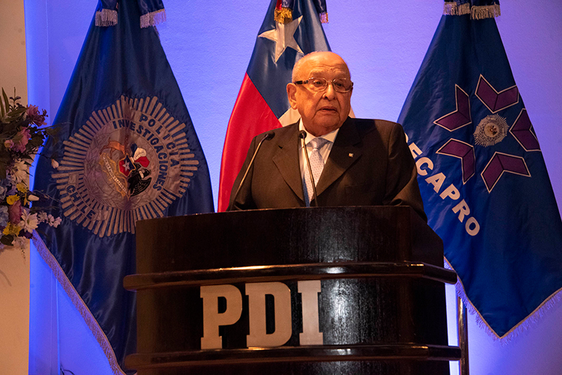 El jefe nacional Marcelo Aguilera, entregó a Eduardo Costoya una medalla de reconocimiento por el importante aporte educativo de la comisión al perfeccionamiento educativo y técnico a la PDI.