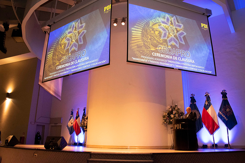 Eduardo Costoya, presidente de la Comisión de Telecomunicaciones recibe reconocimiento en ceremonia de cierre de un seminario de capacitación en la PDI