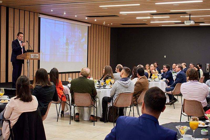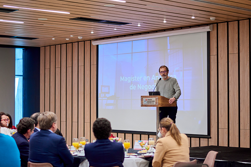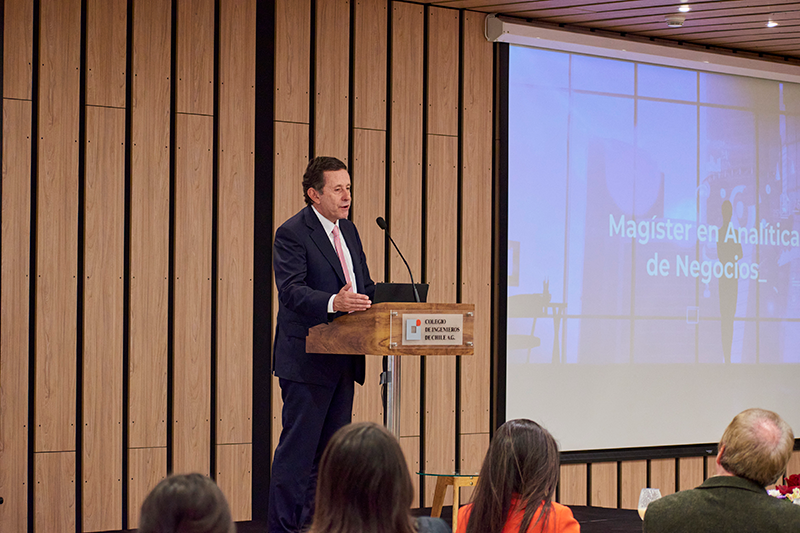 Por su parte, Hernán de Sominihac, saludo a los asistente y comento de los beneficios que recibirán todos los asociados del Colegio de Ingenieros con esta nueva alianza con a Facultad de Economía y Negocios de la Universidad de Chile para cursar este Magíster en Analítica de Negocios junto a otro 12 postgrado más en las áreas de Administración, Economía y Sistemas de Información.