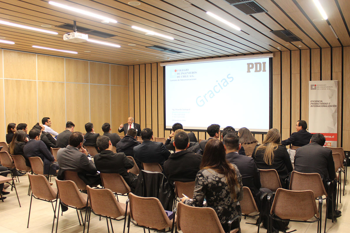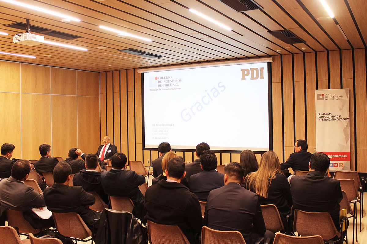 Hasta el Colegio de Ingenieros llegó un grupo de más de 30 detectives de la PDI para participar de una exposición realizada por el Ing. Eduardo Costoya, Presidente de la Comisión de Telecomunicaciones, sobre Localización y Georreferenciación de Teléfonos Celulares. Durante la ponencia se hizo una introducción a los principios básicos y determinadas técnicas para georreferenciar celulares en situaciones de ilícitos.
