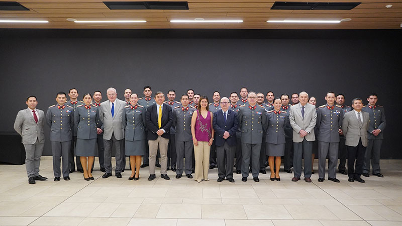 El jueves 19 de diciembre el Colegio de Ingenieros, representado por el Consejo de la Especialidad de Defensa, recibió a los Ingenieros Politécnicos Militares recién titulados de la Academia Politécnica Militar, la actividad comenzó con el saludo de bienvenida de la gerente general del Colegio, Andrea Rojas.