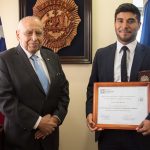- Eduardo Costoya le entrega el diploma al inspector de la PDI José Loch.