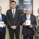 - De izquierda a derecha: El presidente del Colegio de Ingenieros de Chile, Arturo Gana; El Jefe Nacional de la Jenacrof, prefecto inspector Iván Villanueva; el presidente de la Especialidad de Telecomunicaciones, Eduardo Costoya y el ingeniero Marcelo Pandolfo.