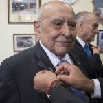 - El presidente de la Especialidad de Telecomunicaciones, Eduardo Costoya, recibe también su lupa e insignia.