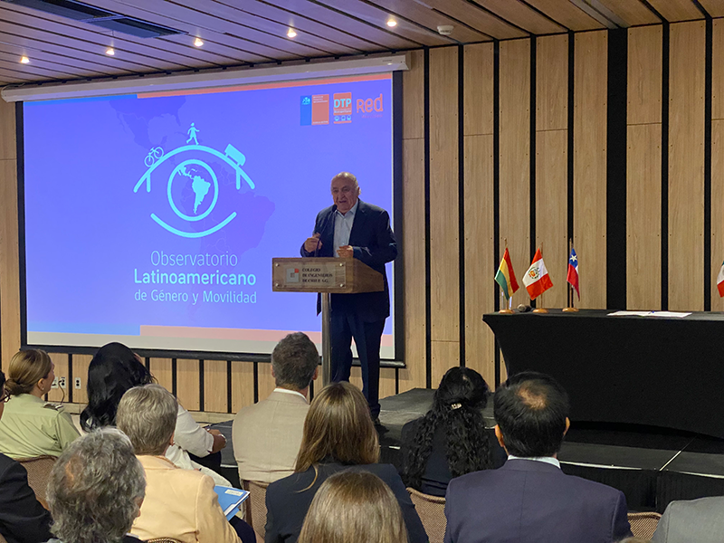 Una importante jornada se llevó a cabo el jueves 30 de marzo en el Edificio del Colegio de Ingenieros, en relación al apoyo y compromiso del gremio con el cumplimiento de la agenda del Ministerio de Transporte y Telecomunicaciones. Con el ministro Juan Carlos Muñoz a la cabecera, se realizó el lanzamiento del Observatorio Latinoamericano de Género y Movilidad, el cual contó con destacadas autoridades, como la directora del Directorio de Transporte Metropolitano Paola Tapia; la subsecretaria del Ministerio de la Mujer y Equidad de Género, Luz Pascuala Vidal; el representante del COSOC de Transportes y miembro de la Comisión del sector del Colegio de Ingenieros, Norman Partarrieu, representantes de las agencias de transportes públicos de Lima, Bogotá, La Paz, Ciudad de México, entre otros asistentes.
