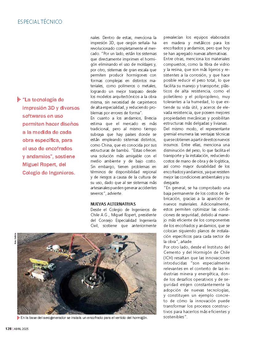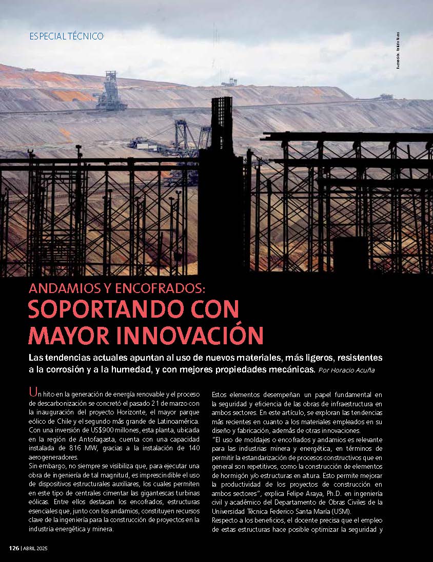 Miguel Ropert en reportaje sobre andamios y encofrados en revista Nueva Minería