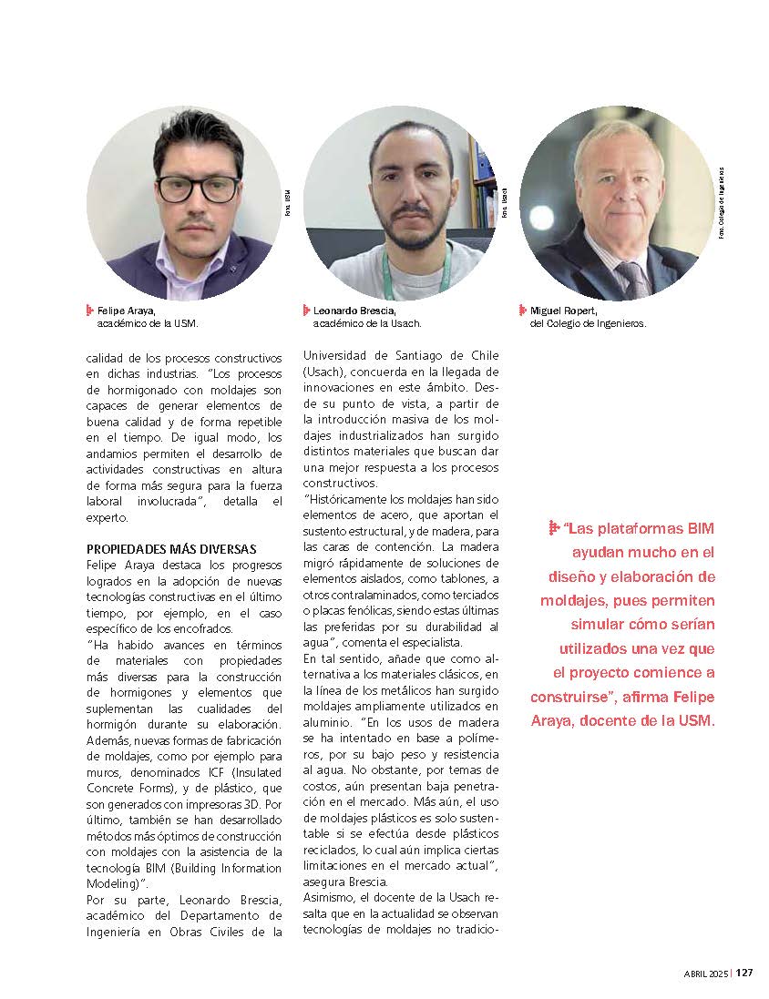 “En general, se ha comprobado una baja permanente de los costos de fabricación, gracias a la aparición de nuevos materiales. Adicionalmente, estos permiten optimizar las condiciones de seguridad, debido al manejo más eficiente de los componentes de los encofrados y andamios, que se colocan siguiendo planos de instalación específicos para cada sector de la obra”