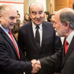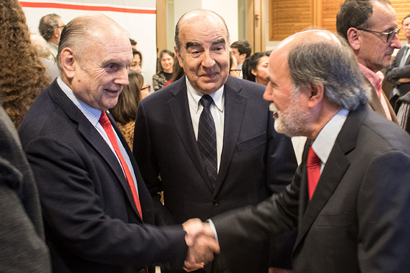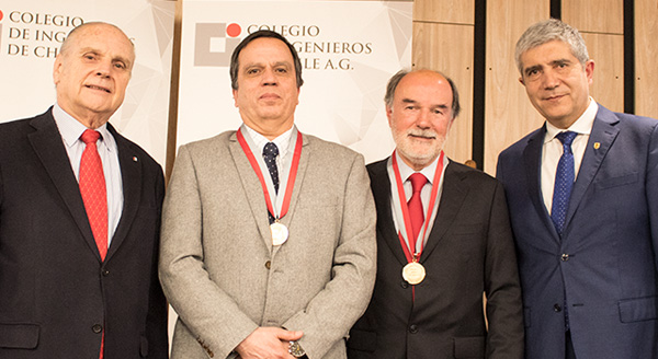 Arturo Gana, presidente del Colegio de Ingenieros; Luis Moran, Decano de la Facultad de Ingeniería de la Universidad de Concepción, el Ingeniero Ricardo Simpson, y Carlos Saavedra, Rector de la misma Casa de Estudios.
