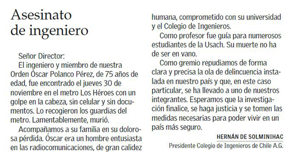 Hernán de Solminihac, presidente del Colegio de Ingenieros, en edición especial de Diario Financiero