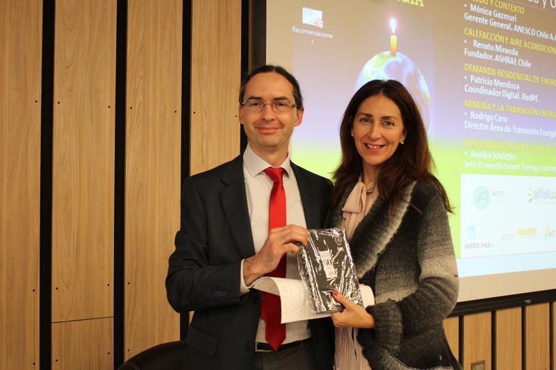 Monica Gazmuri, gerente general de ANESCO A.G., inició la jornada refiriéndose al panorama actual de Chile, resaltando dos hechos importantes: uno, el gobierno anterior termino con una moción parlamentaria, que en el fondo es una inspiración de ley de EE y lo segundo, la Ruta Energética que realizó este gobierno, a principio de año -maratónica pasada por todas las regiones levantando términos de energía- donde la EE es un término importante para la ciudadanía y el Estado.