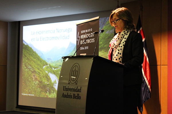 Noruega es el país con mayor participación de electromovilidad en el mundo, "Actualmente, Noruega cuenta con el mayor número de vehículos eléctricos por habitante en el mundo. En 2017 más del 50% de los autos vendidos fueron eléctricos, híbridos o plug-ins. Y los número que tenemos hasta ahora, para el 2018 va a continuar." Explicó la Embajadora.