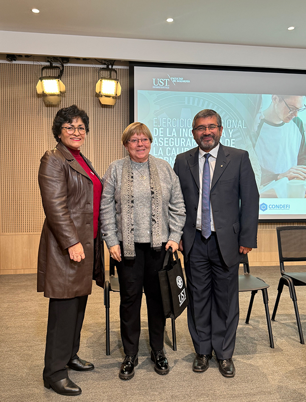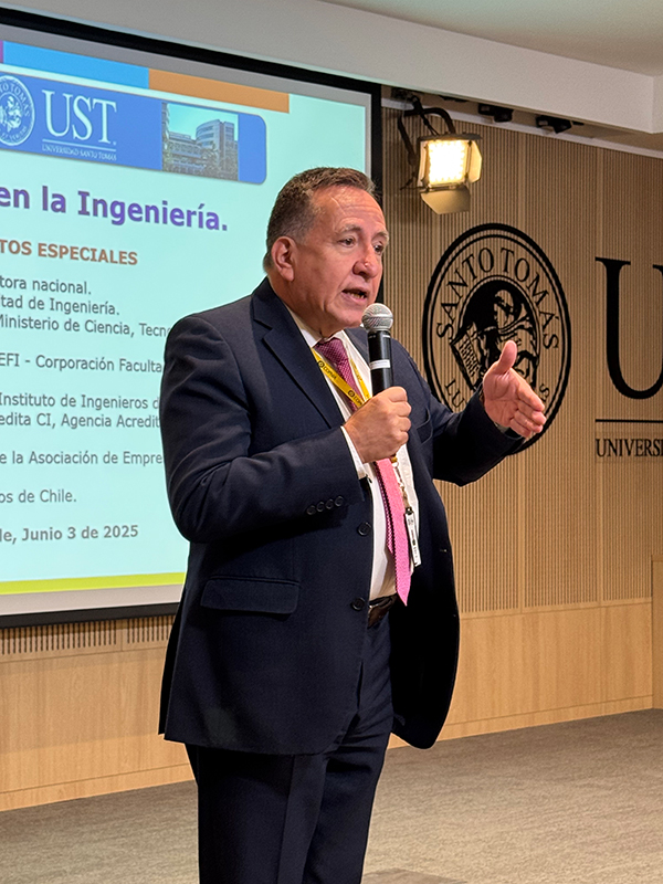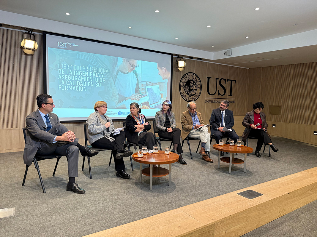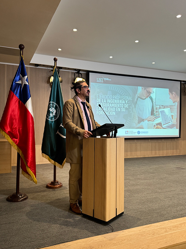 El pasado 3 de junio de 2025 se llevó a cabo en el Aula Magna de la Universidad Santo Tomás, en Santiago, el seminario "Ejercicio profesional de la ingeniería y aseguramiento de la calidad en su formación", una instancia convocada por cinco destacadas instituciones del ámbito académico y profesional: la Facultad de Ingeniería de la Universidad Santo Tomás, CONDEFI, el Colegio de Ingenieros de Chile, la Agencia Acreditadora Acredita CI y el Instituto de Ingenieros de Chile. EAl evento asistieron cerca de 150 profesionales, académicos y estudiantes de ingeniería en modalidad presencial y se conectaron más de 250 personas de todo Chile en modalidad streaming.