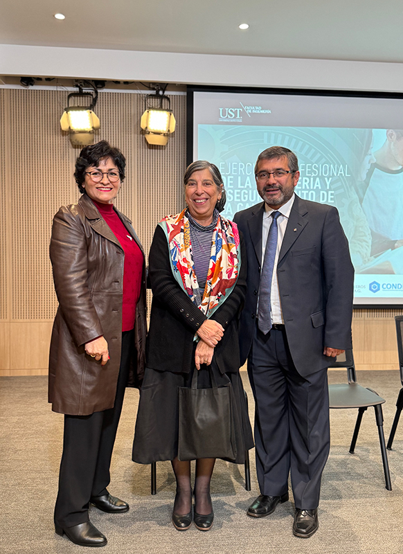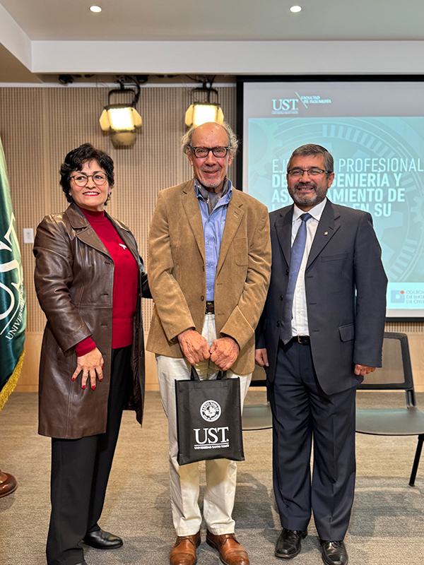 Rubén Ochoa, presidente del Consejo Profesional Nacional de Ingenieros de Colombia, COPNIA. Posteriormente, se realizó un panel de conversación moderado por el decano de la Facultad de Ingeniería de la Universidad Santo Tomás, Juan José Negroni, y la gerente general de Acredita CI, Jessica Pizarro. En la instancia participaron destacadas figuras del sector: Juan Pablo Negroni, presidente de AIC; Jorge Farías, presidente de CONDEFI; Felisa Córdova, presidenta directorio de Acredita CI; Elías Arze, Colegio de Ingenieros de Chile A.G.; Silvana Cominetti, Instituto de Ingenieros y María José Silva, experta en innovación en ingeniería.
