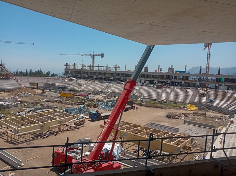 - Tendrá entre 22 y 24 palcos. Se contará con las vigas más grandes que se han hecho en Chile con alma de metal y externo laminado.