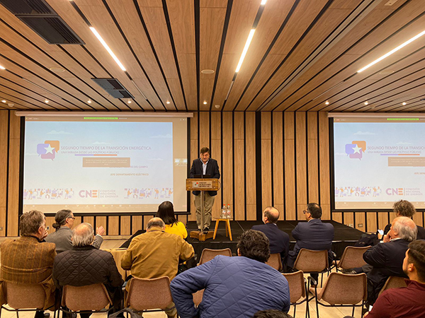 Las presentaciones finales del Mes de la Energía comenzaron con Denison Fuentes, jefe del Departamento Eléctrico de la Comisión Nacional de Energía, quien expuso sobre el las políticas públicas en un segundo tiempo de la transición energética, destacando los pilares del proyecto de ley de transición energética en cuanto al desarrollo eficiente de obras de transmisión; el sector eléctrico y cambio climático y la promoción de la competencia y fomento al almacenamiento.
