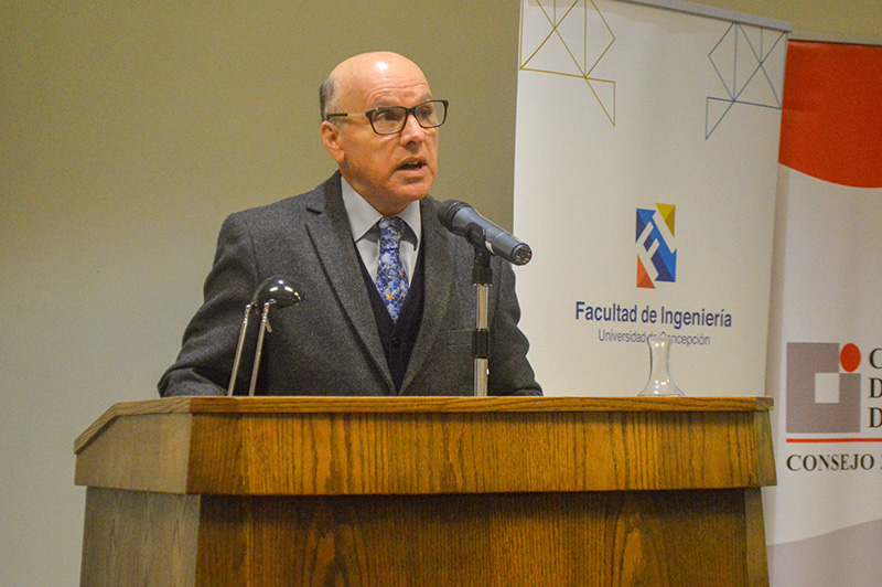 El martes 10 de septiembre, en el Auditorio Salvador Gálvez de la Facultad de Ingeniería de la Universidad de Concepción, se llevó a cabo el seminario "Inversión Infraestructura MOP e Inversiones en Proyectos de Generación Eléctrica", organizado por Pedro Ramírez, presidente del Consejo Zonal Biobío del Colegio de Ingenieros de Chile, en conjunto con Luis Morán, decano de la Facultad de Ingeniería de la Universidad de Concepción.