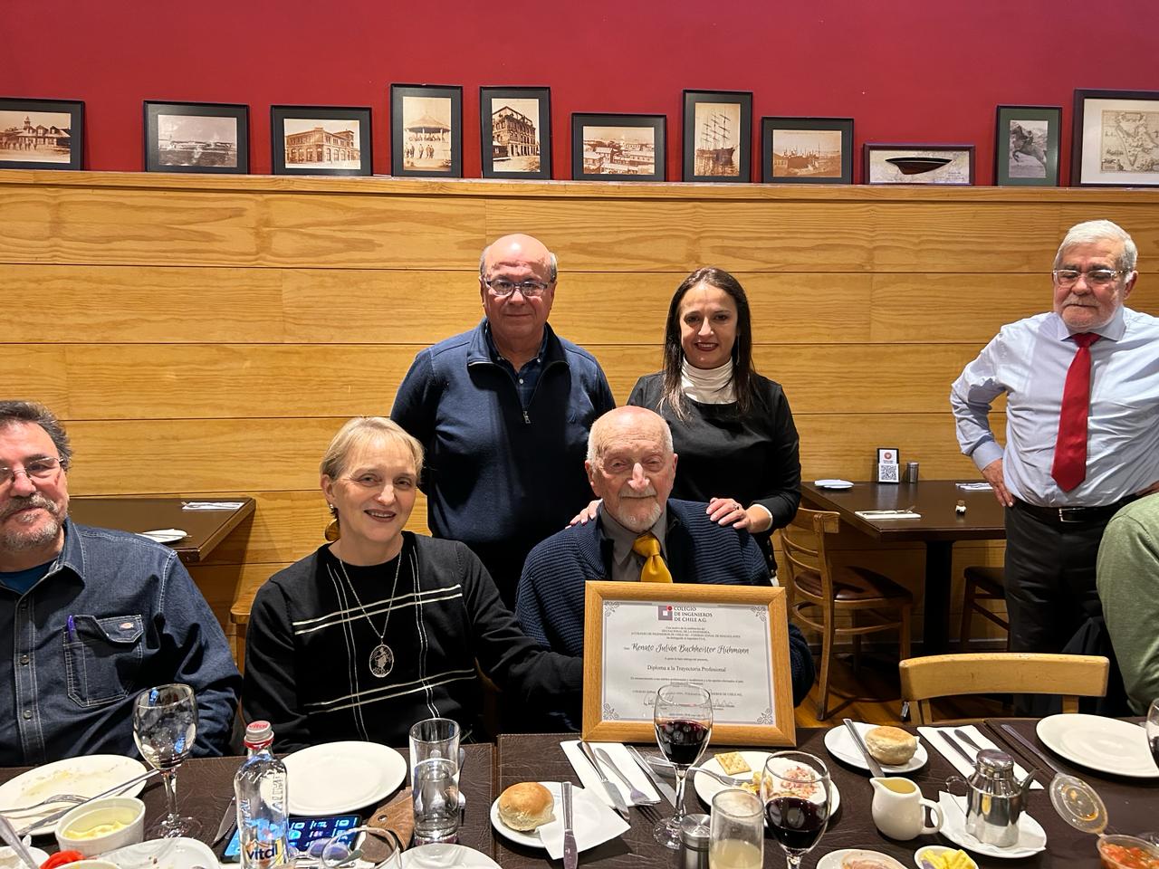 El viernes 24 de mayo el Consejo Zonal Magallanes conmemoró el Día de la Ingeniería en el restaurant Los Ganaderos en Punta Arenas. En la reunión y como iniciativa de nuestro socio Carlos Quezada se realizó un reconocimiento por su trayectoria profesional al ingeniero Renato Julian Hans Jürgen Buchheister Flühmann.